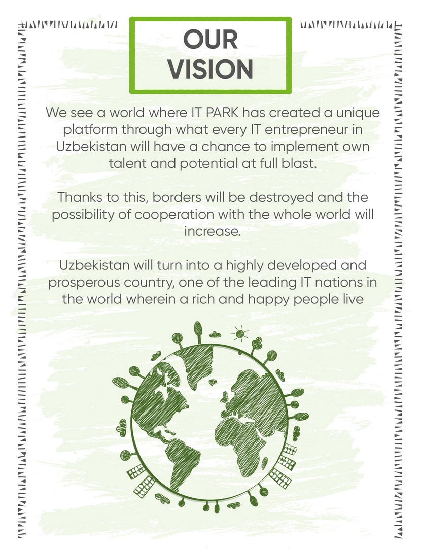 During the first visit of the President of the Republic of Uzbekistan Shavkat Mirziyoyev to the Republic of India, which was held from September 30 to October 2, 2018, Uzbek and Indian Parties agreed to expand cooperation in the field of IT. The Uzbek side, together with the information and technology companies of India, expressed interest in creating an Information Technology Park in Uzbekistan on basis of their best practices in software development and accelerating startups. Thus, it can be noted that IT Park was created on the initiative of the President of the Republic of Uzbekistan to improve the startup ecosystem and startup projects and their implementation in our country.