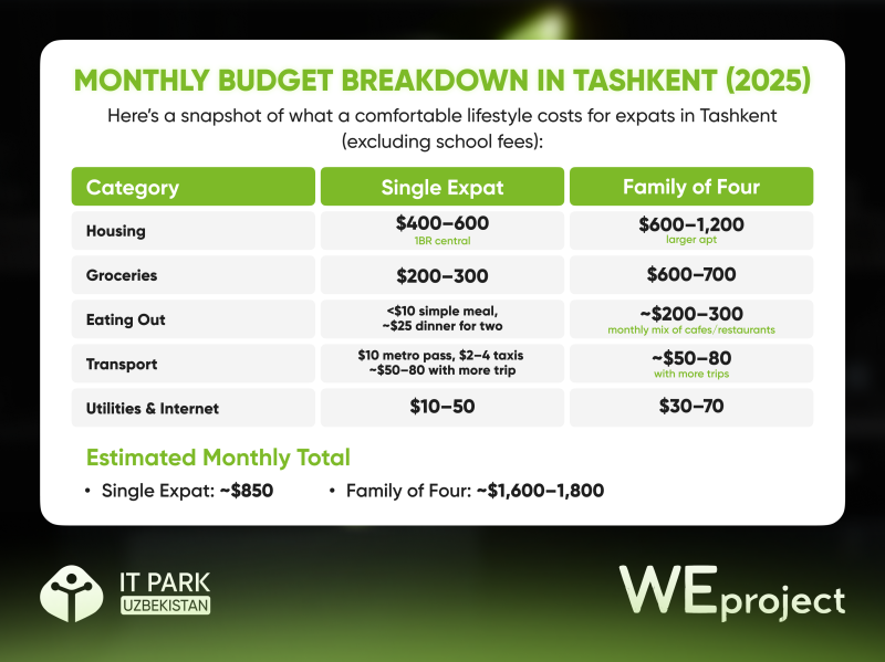 Monthly budget breakdown in Tashkent (2025)