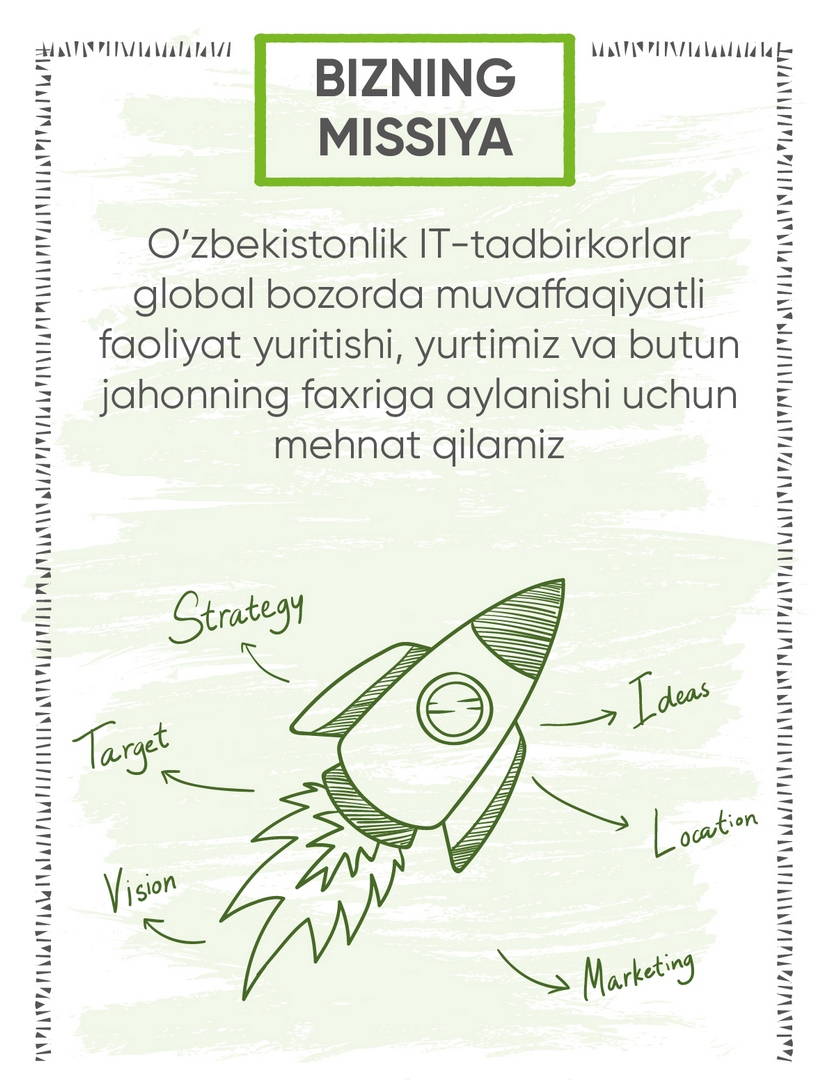 2019-yil 24-iyulda Toshkentda Oʻzbekiston Respublikasidagi birinchi IT Park ochildi. Ushbu qisqa vaqt ichida IT Park 28 yangi startaplar koʻrinishidagi birinchi mevalarini berdi, axborot texnologiyalari sohasida oʻnlab loyihalarni yaratdi, shuningdek, yoshlarni ragʻbatlantirish, ushbu sohaga qiziqishi va aholida kompyuter savodxonligini rivojlantirish uchun treninglar, “vorkshop” va “mitap”lar yaratdi.