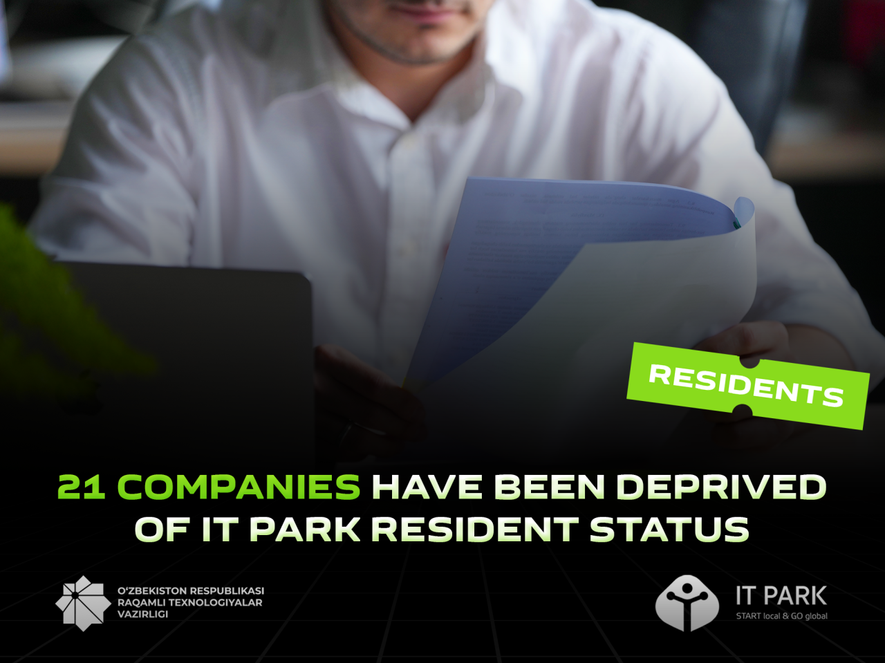As of May 1, 2023, 21 companies were deprived of their resident status by the decision of IT Park for failure to fulfill their obligations. The list of enterprises deprived of status can be found below.
