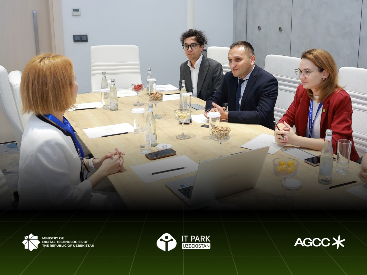 Abdulakhad Kuchkarov, CEO of IT Park Uzbekistan, held a meeting with a delegation from AGCC, led by Gemma John, CEO of AGCC Korea. The parties discussed prospects for cooperation in the development of the startup ecosystem, the organization of joint acceleration programs, and the hosting of international competitions.