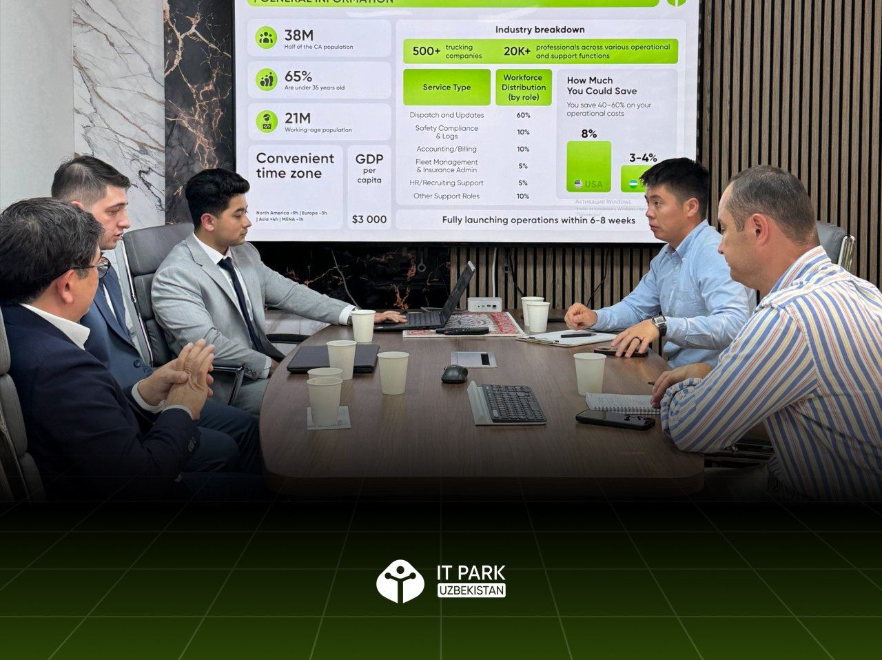 Representatives of IT Park held a meeting with members of the Kyrgyz diaspora, which included representatives of Bilato, White Red White, Justice Inc., and ABM TRANS. The companies expressed their interest in expanding operations in Uzbekistan and establishing offices in Tashkent, noting the advantages of a favorable business environment and proximity to regional markets.