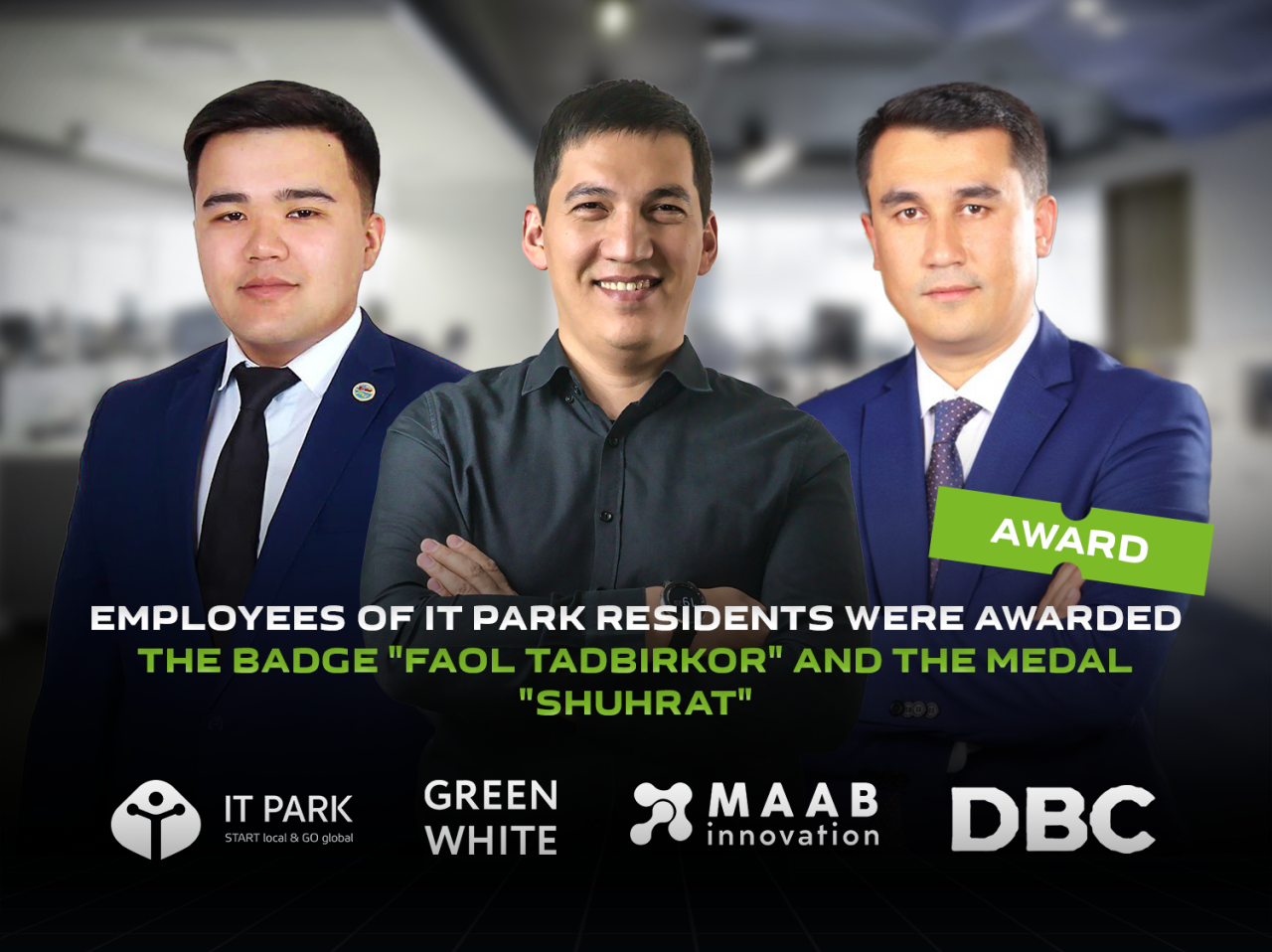 Employees of IT Park resident companies are among those bestowed with the badge “Faol Tadbirkor”:
