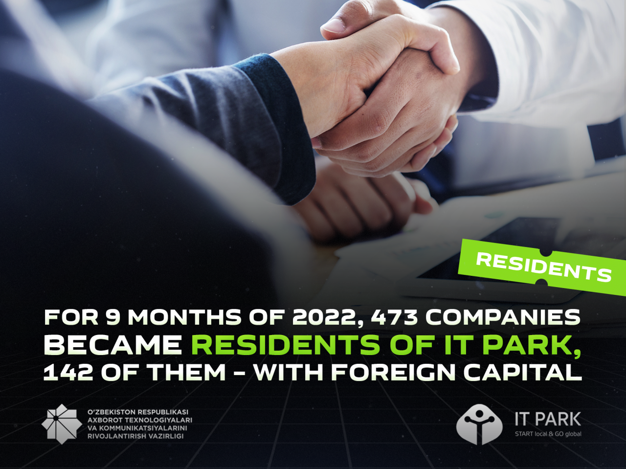 In addition, 119 companies were deprived of their resident status for non-compliance with obligations to IT Park. As you know, residents must carry out their activities in accordance with the requirements of the Resolution of the Cabinet of Ministers No.589 of July 15, 2019 and fulfill obligations under the Agreement on the conditions for the activity of IT Park resident.