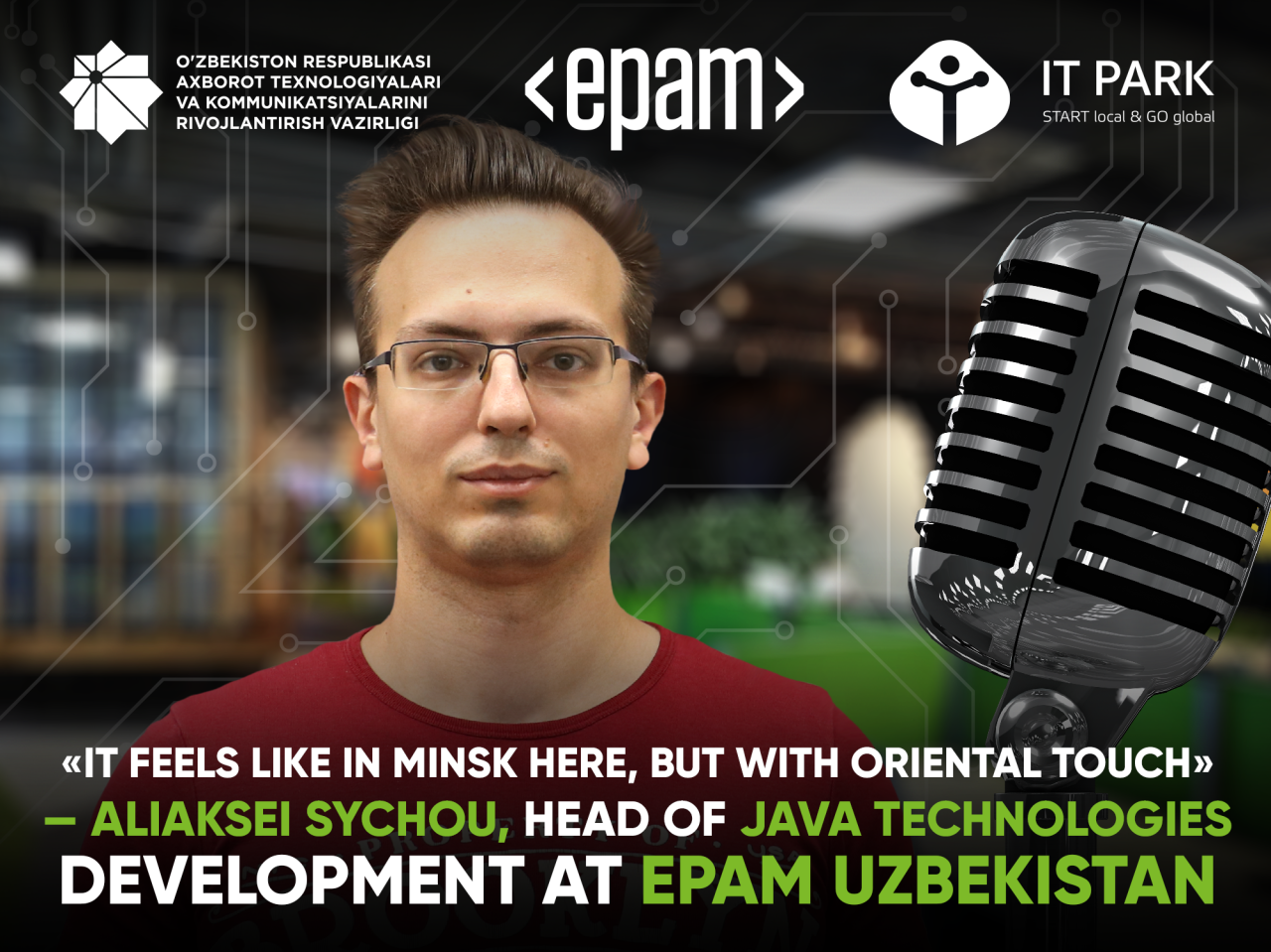 IT Park continues to tell the stories of IT professionals who moved to live and work in Uzbekistan. This time we had a chance to speak to Aliaksei Sychou, 29 year-old Head of Java Technologies development at EPAM Uzbekistan. He has been working for EPAM for 7 years who build his career starting as a middle developer.