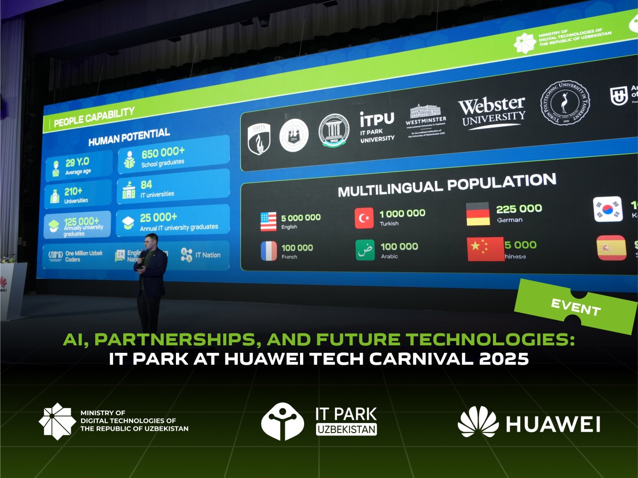 “Hosting the Huawei Tech Carnival & Partner Summit 2025 in Tashkent underscores Uzbekistan’s rising prominence as a regional technology hub. It is a great honor for us to welcome this event and to witness Uzbekistan serving as a platform for shaping the future of AI and the digital economy,” stated Jakhongir Normatov, representative of IT Park Uzbekistan.