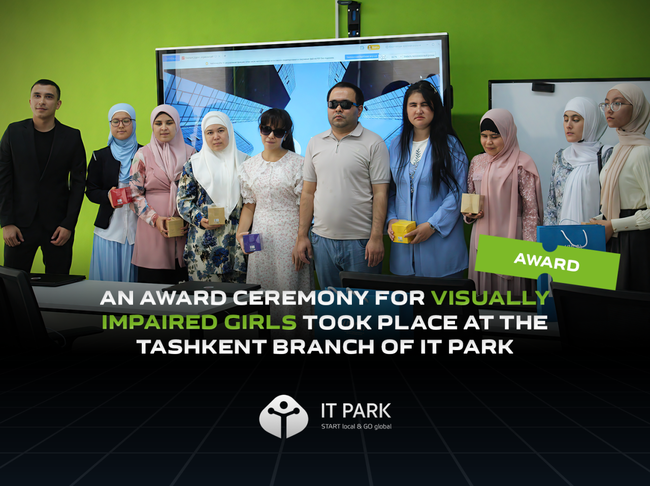 On September 30th, an official award ceremony took place at the Tashkent branch of IT Park to honor visually impaired young women who completed programming courses developed with the support of IT Park.