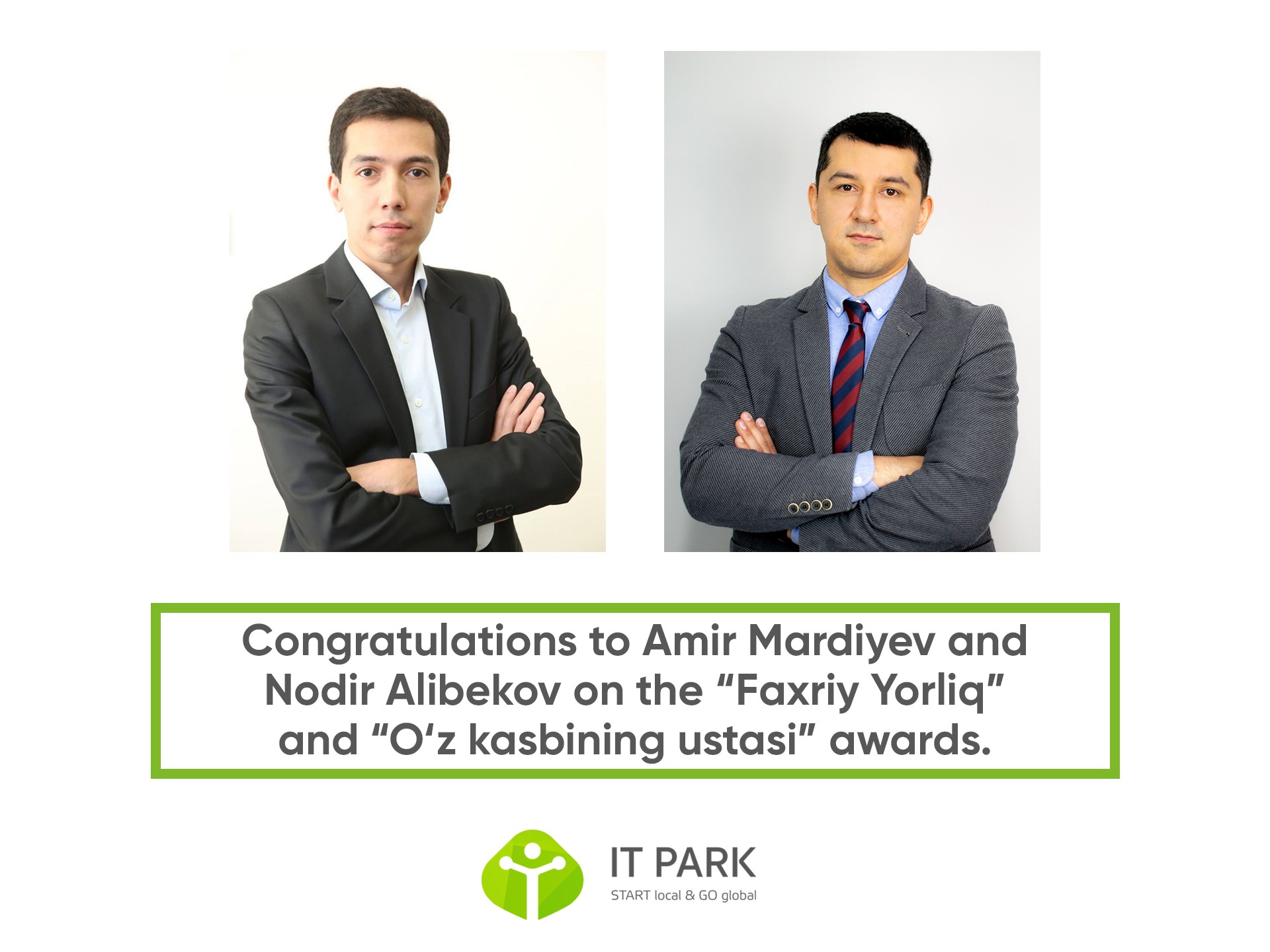 The IT Park team congratulates Amir Fazliddinovich Mardeev and Nodirbek Turdimurodovich Alibekov and wishes them further success and achievements in their professional careers and in life in General!