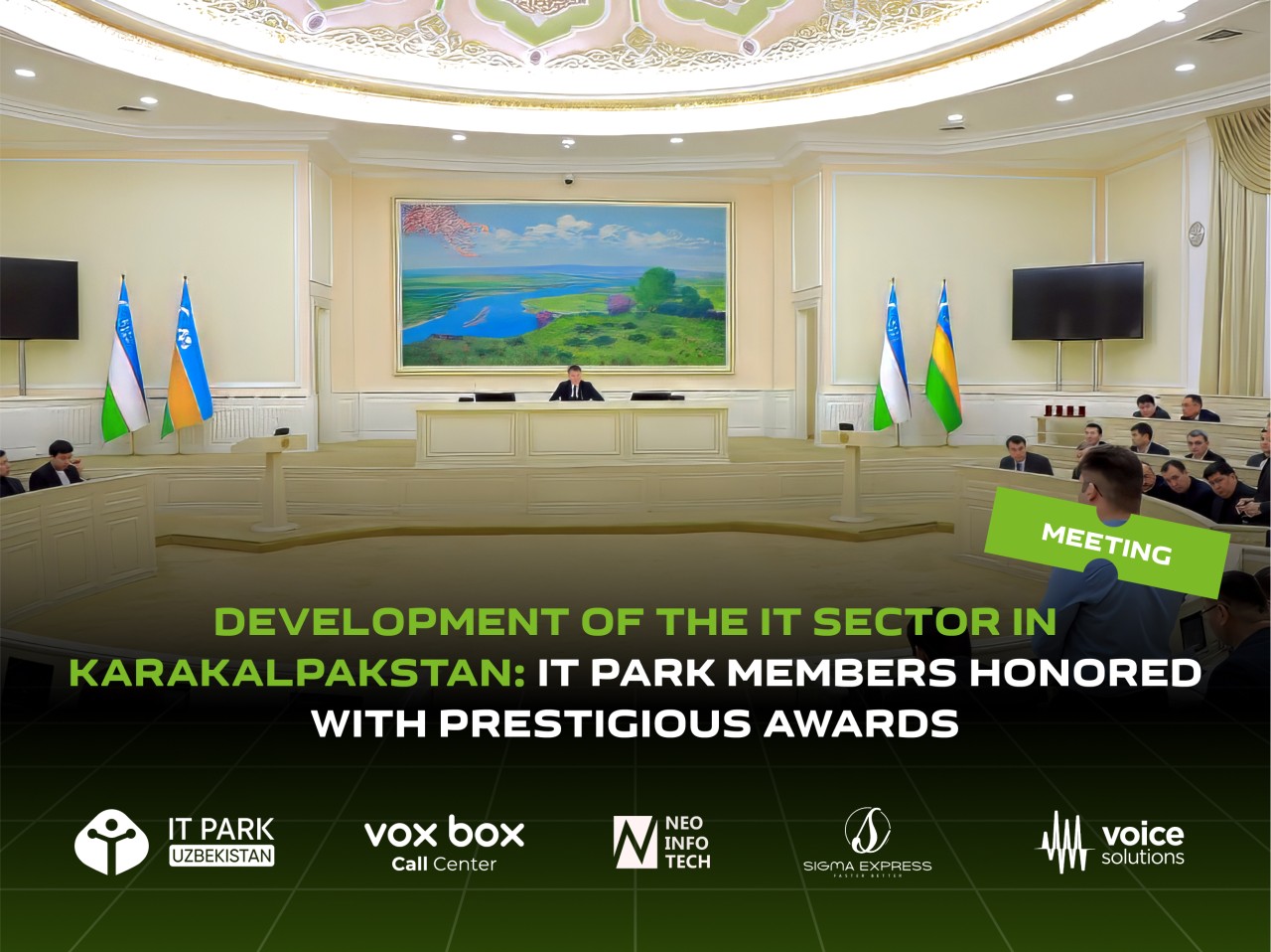 Chairman of the Jokargy Kenes of Karakalpakstan, Amanbai Orynbaev, held a meeting with representatives of the IT sector to discuss key issues related to the development of digital technologies and the expansion of IT services in the region. Based on the 2024 results, IT Park members who demonstrated exceptional achievements in the IT industry were awarded with honorary distinctions.