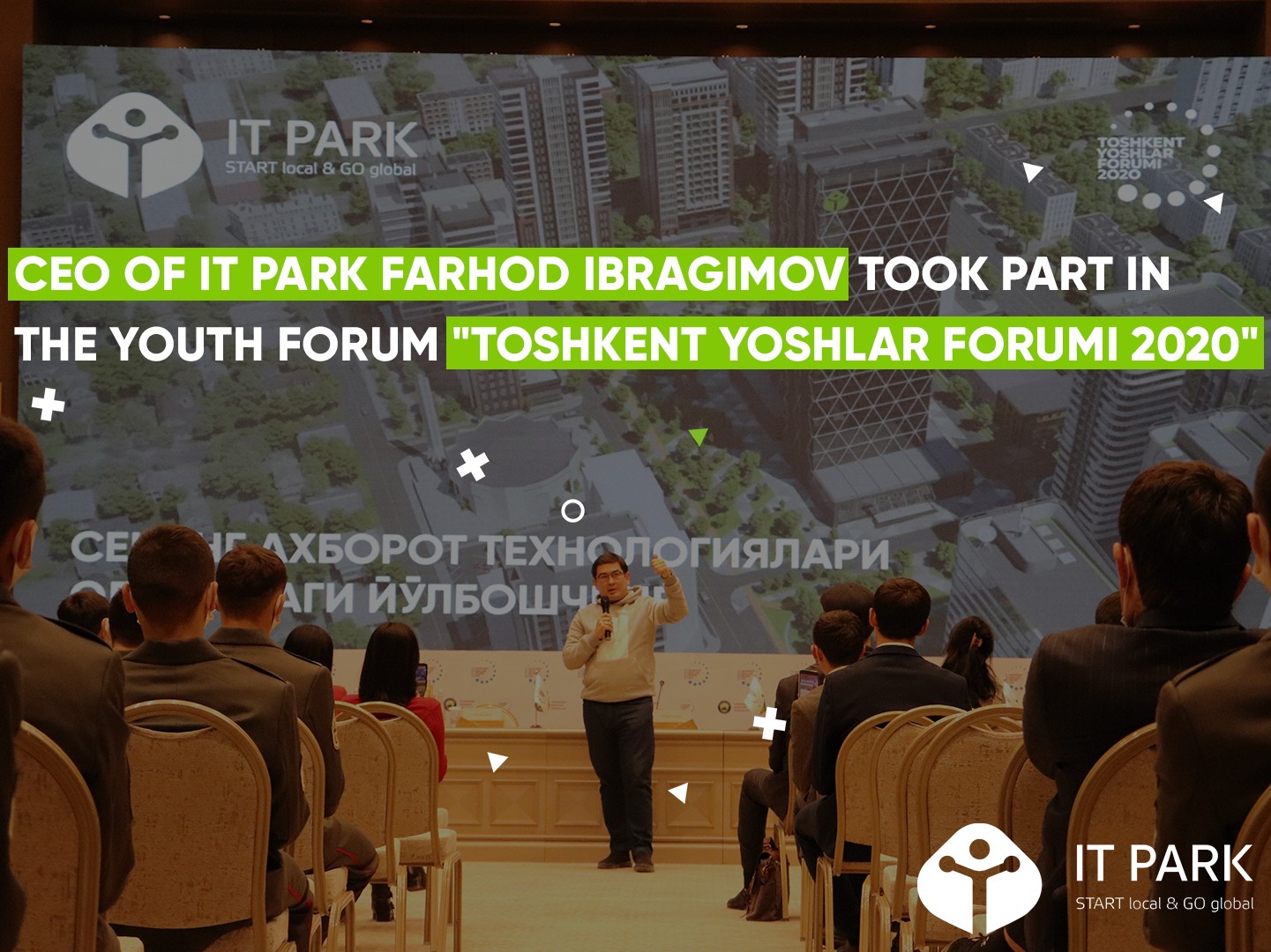 18 декабря 2020 года Директор IT Park Фарход Ибрагимов принял участие в первом в истории страны форуме "Toshkent Yoshlar forumi 2020", организованном Хокимиятом города Ташкент, а также Агентством по делам молодежи и Союзом молодежи Республики Узбекистан.