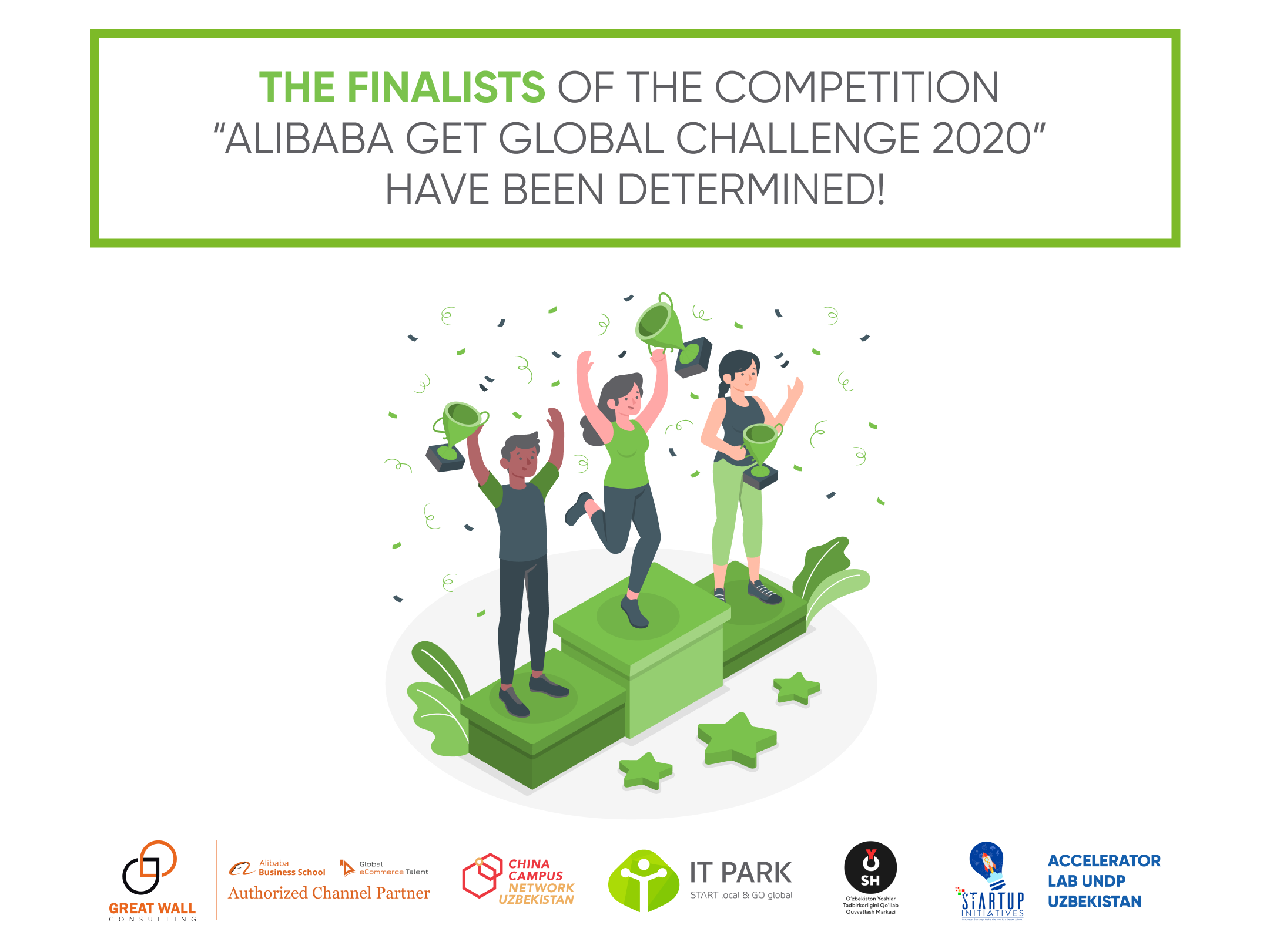 The competition "Alibaba GET Global Challenge 2020" was announced by IT Park, together with China Campus Network (representative of Alibaba GET in Uzbekistan), Startup initiatives, Accelerator Lab of the UNDP and the Youth Entrepreneurship Support Center of Uzbekistan.