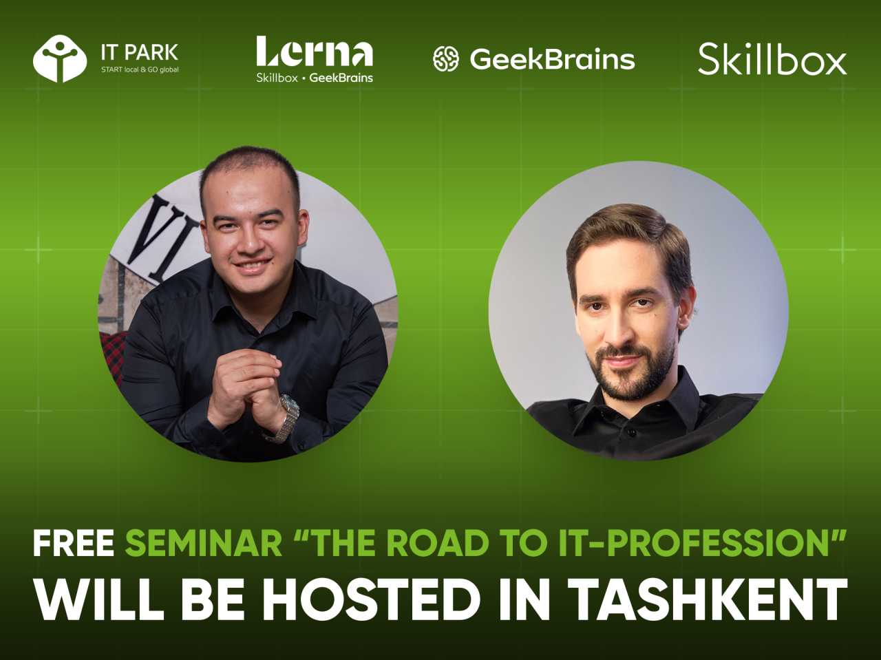 On May 12, at 18:00, a free seminar “The Road to IT-profession” will be held in Tashkent. The training was organized by IT Park together with the Lerna educational platform, the official representative of Skillbox and GeekBrains courses in Uzbekistan.