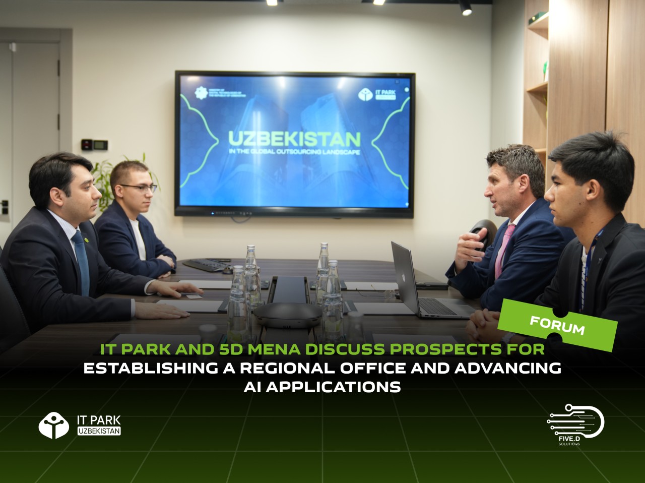 As part of the Tashkent International Investment Forum, Elyor Maksudov, Startup and Investment Development Director at IT Park Uzbekistan, held a meeting with Safwan Amin Omari, CEO of 5D MENA. The discussions centered on potential avenues of cooperation in the digital technology sector, particularly the implementation of artificial intelligence (AI) projects and the establishment of a regional office of 5D MENA in Uzbekistan.