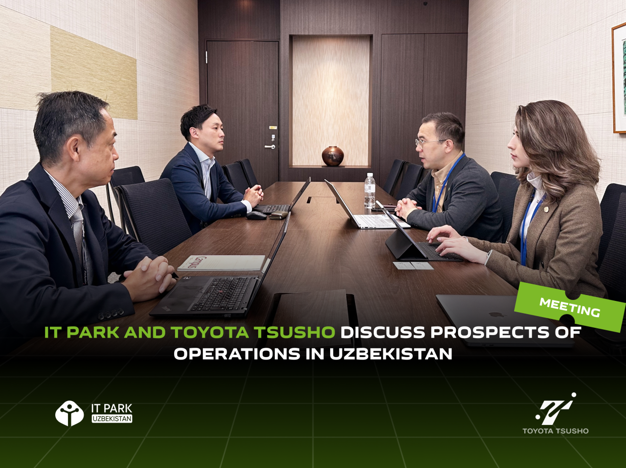 A delegation from IT Park, led by Global Marketing and Communications Director Jamila Khalibaeva, held a meeting with representatives of Toyota Tsusho Corporation, led by Eiji Yatabe, Head of Digital Division. The discussion centered on plans for the establishment of Toyota Tsusho’s office in Uzbekistan, slated for opening by April 2025.