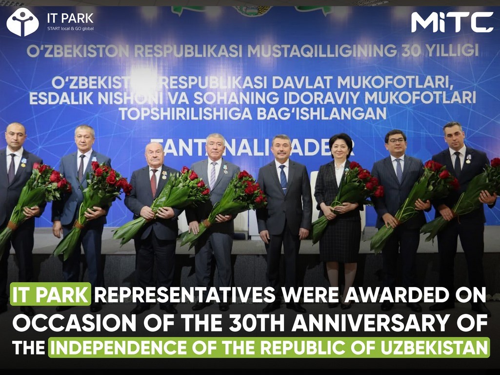 State awards were received by IT Park Director Farhod Ibragimov, Deputy Director for Regional Development of IT Park Abdulakhad Kuchkarov, Deputy Director of IT Park for International Affairs Bohodir Ayupov, Deputy Director of IT Park for Innovative Development Jakhongir Rajabov, Director of the Jizzakh branch of IT Park Mukhitdinova Nazira, Education Manager Of the Karakalpak branch of IT Park Elmuratov Madiyar, as well as employees of the Ministry for the Development of Information Technologies and Communications and other representatives of subordinate organizations.