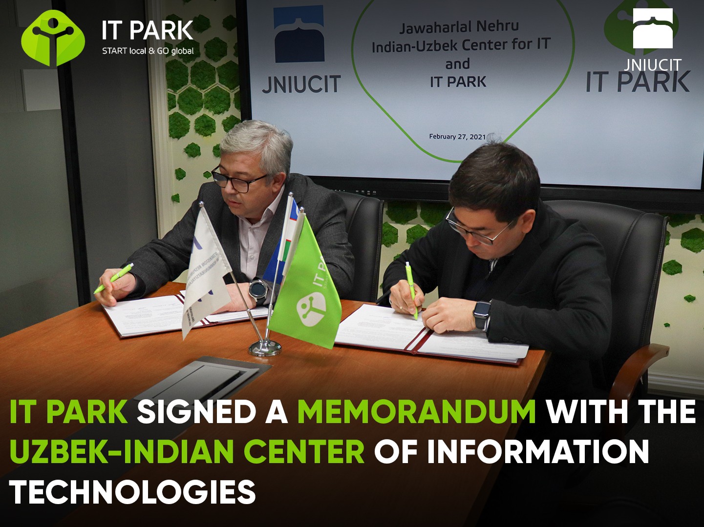 Considering the importance of developing information technologies, creating an ecosystem to support talented youth and IT education, on February 27, 2021, IT Park signed a memorandum of cooperation with the Uzbek-Indian Center for Information Technologies named after Jawaharlal Nehru at the Tashkent University of Information Technologies named after Muhammad al Khorazmiy.