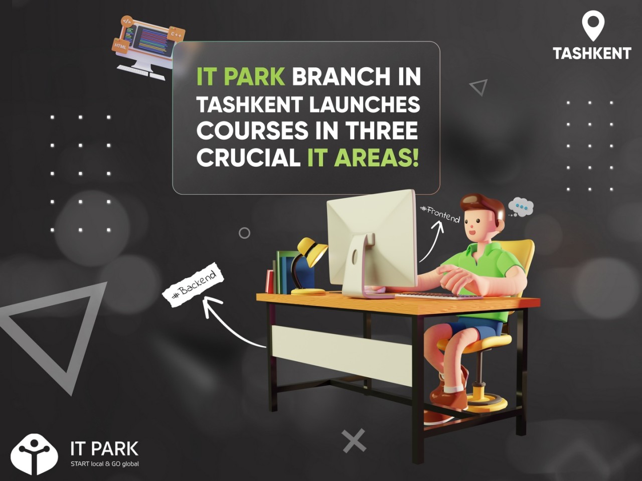 Owing to the high demand for IT specialists, we are announcing the launch of three courses at the IT Park branch in Tashkent, namely: