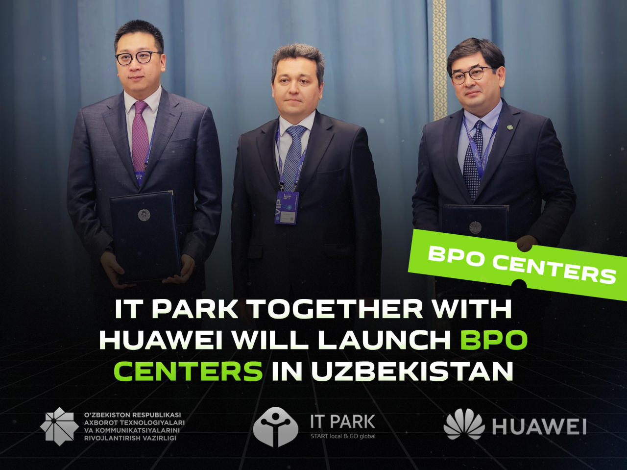 On October 25, Director of IT Park Uzbekistan Farhod Ibragimov and Director of Huawei in Uzbekistan Chen Jiakai signed a protocol on the establishment of two business process outsourcing centers (BPO Centers) in the cities of Uzbekistan – Termez and Namangan.