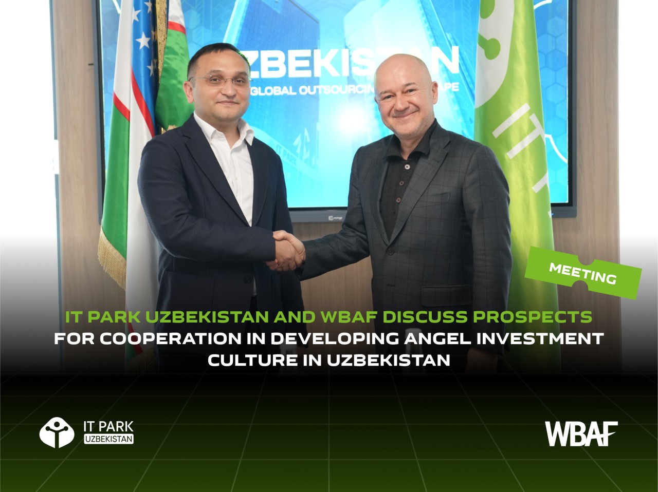 IT Park Uzbekistan, led by CEO Abdulakhad Kuchkarov, held a meeting with representatives of the World Business Angels Investment Forum (WBAF) to discuss initiatives aimed at fostering angel investing and strengthening Uzbekistan’s startup ecosystem. During the discussions, the parties explored key areas of cooperation, including the launch of educational programs for investors, certification of angel investors, and Uzbekistan’s integration into the global investment community.