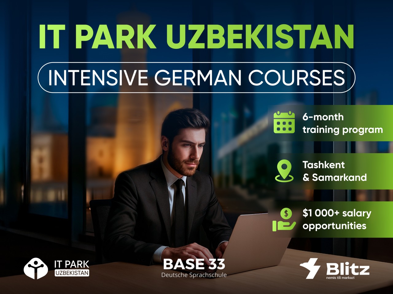 IT Park Uzbekistan is pleased to announce the launch of a joint educational program in collaboration with the educational centers BASE 33 and Blitz, aimed at training highly qualified specialists with a strong command of the German language in the cities of Tashkent and Samarkand.