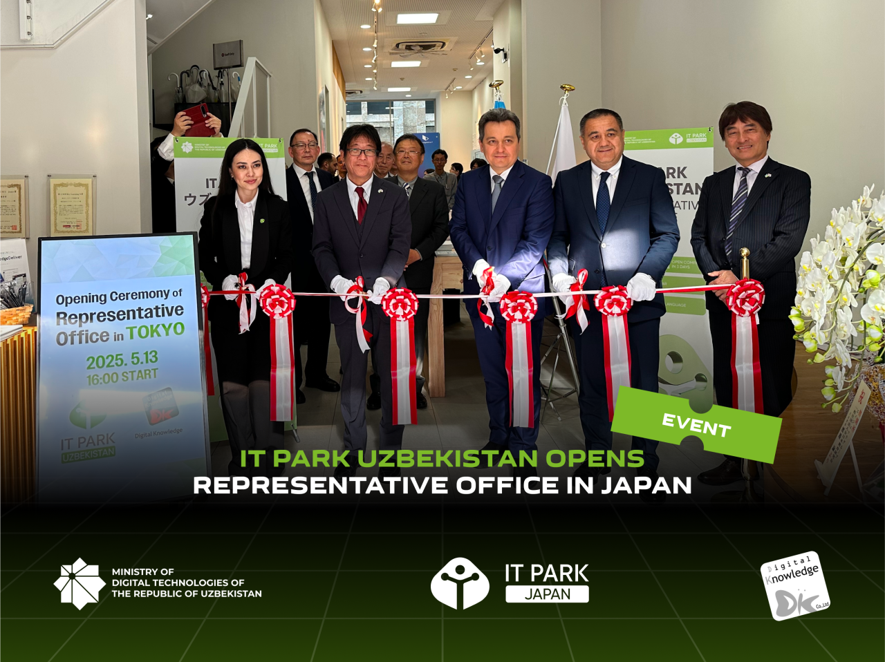 The opening ceremony took place on May 13 in Akihabara — Tokyo’s renowned technology and creative industry district. The event was attended by the Ambassador Extraordinary and Plenipotentiary of the Republic of Uzbekistan to Japan, Mr. Mukhsin Abdurakhmonov, Minister Shermatov, Ms. Muksinova, and Chairman of the Board of Digital Knowledge, Mr. Hiroaki Haga. The newly established office will serve as a strategic hub for direct engagements with Japanese businesses, promoting joint initiatives in outsourcing, investment, and IT education.