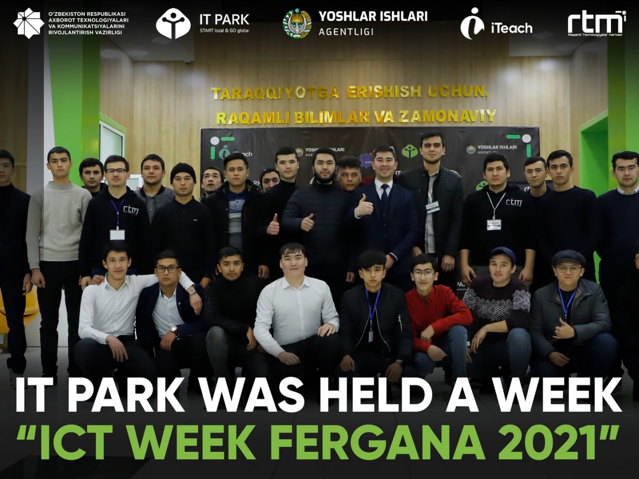 From December 20 to 26 this year, under the leadership of IT Park with the support of the Fergana regional department of the Ministry for the Development of Information Technologies and Communications, as well as in cooperation with the khokimiyat of the Fergana region, the week “ICT Fergana 2021” was held, within which a hackathon, ideathon, a robotics competition, an e-Sports competition, and an IT fair.