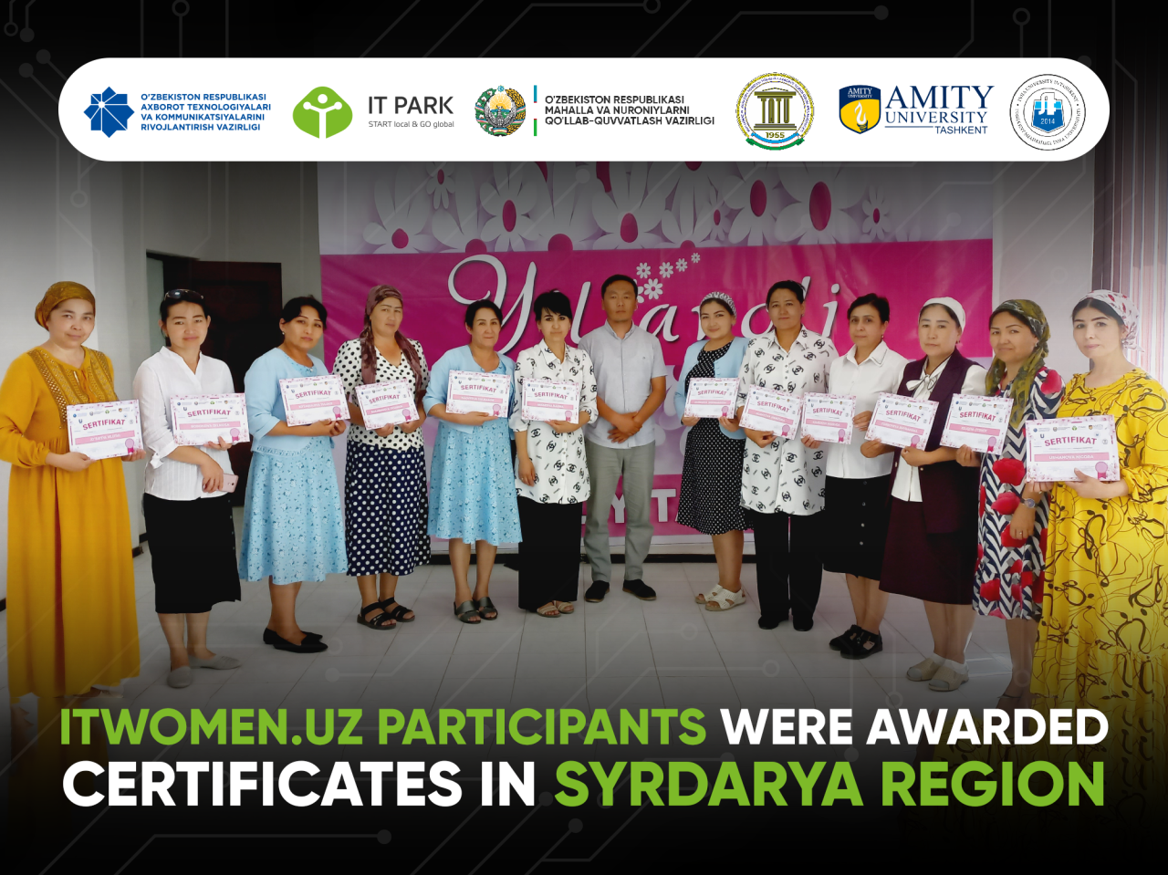 IT. Women. Uz was initiated by ICT Ministry and IT Park jointly with Ministry for support of makhalla and family, Tashkent University of Information Technologies, Amity and Inha Universities.