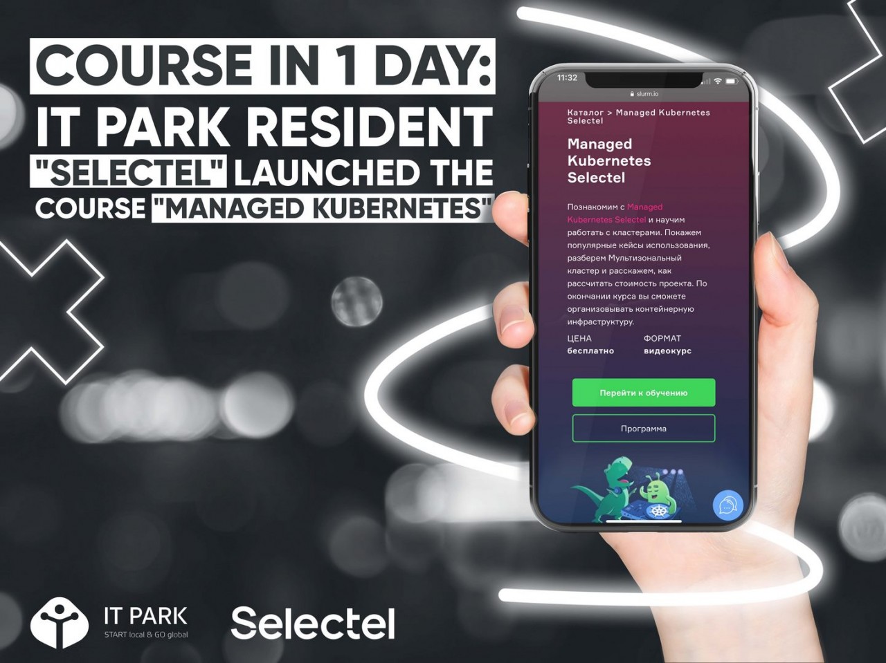 IT-компания «Selectel», являющаяся резидентом IT Park, совместно с учебным центром «Слёрм» запустили курс «Managed Kubernetes», который можно пройти всего за 1 день. В курс входит теория, разборы кейсов и множество практических заданий, для выполнения которых каждый слушатель курса получает промокод на 3 000 рублей (433 280 сум) в сервисе «Managed Kubernetes Selectel». Все занятия бесплатны и находятся в открытом доступе.