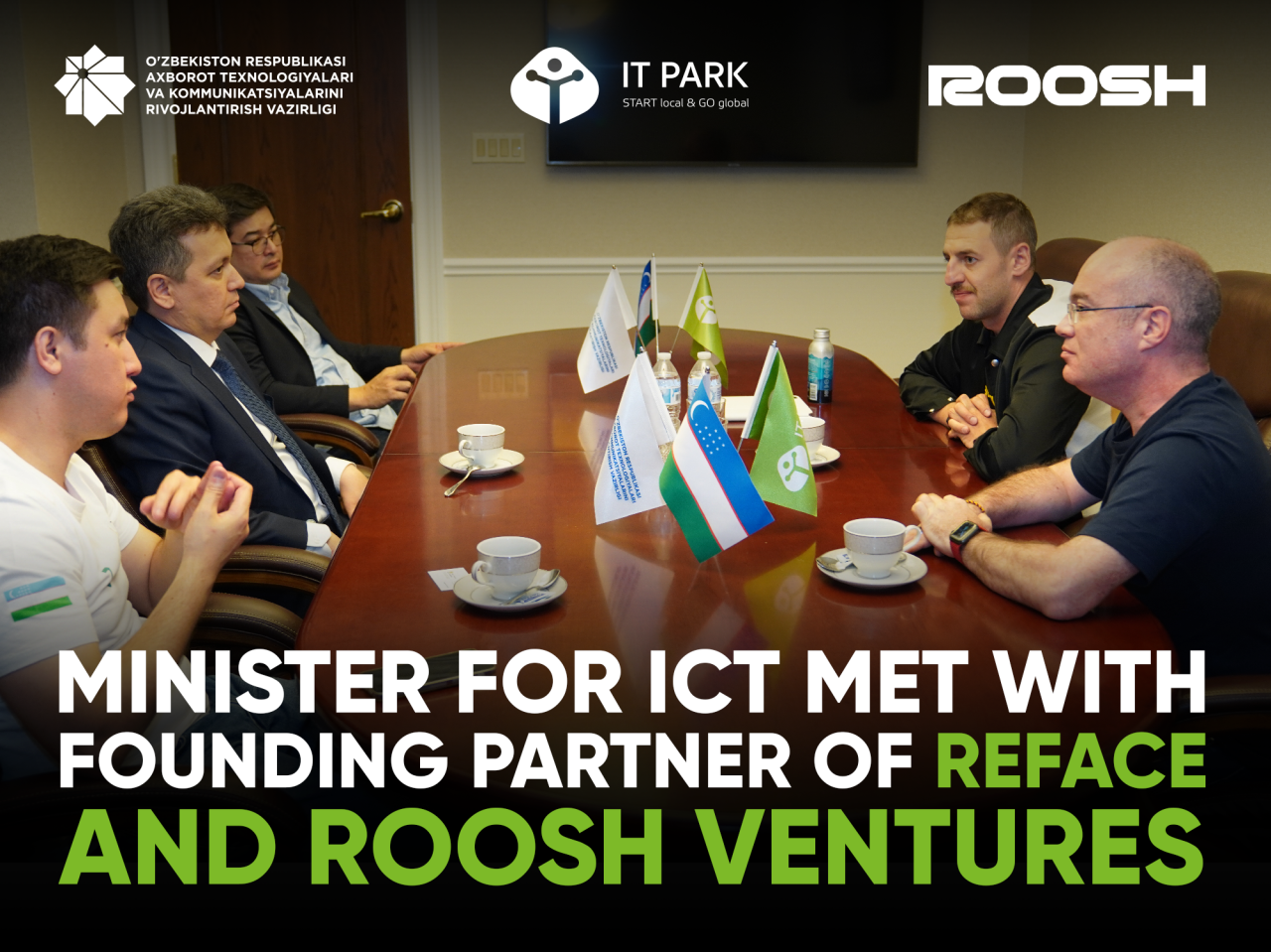 On June 20, Minister for the Development of Information Technologies and Communications Sherzod Shermatov met in New York with the founding partner of Reface and Roosh Ventures, Sergey Tokarev. Deputy Minister of Public Education Rustam Karimjonov and CEO of IT Park Farhod Ibragimov also attended the meeting.