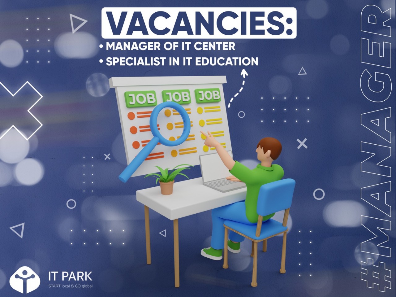 IT Park is looking for talented managers and teachers for a Front end and Back end in IT Centers in all regions of the republic for its team. You can submit your resume regardless of the region of residence since we will find you a job in the nearest IT Center!