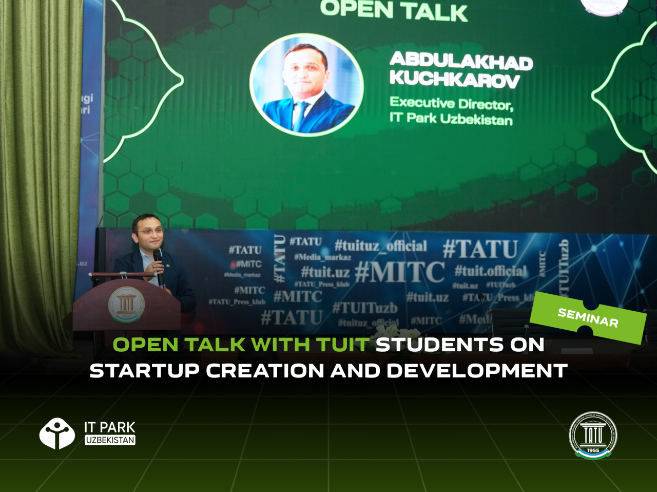 Tashkent University of Information Technologies, named after Muhammad al-Khwarizmi, hosted an Open Talk featuring Abdulakhad Kuchkarov, Executive Director of IT Park Uzbekistan and university students.