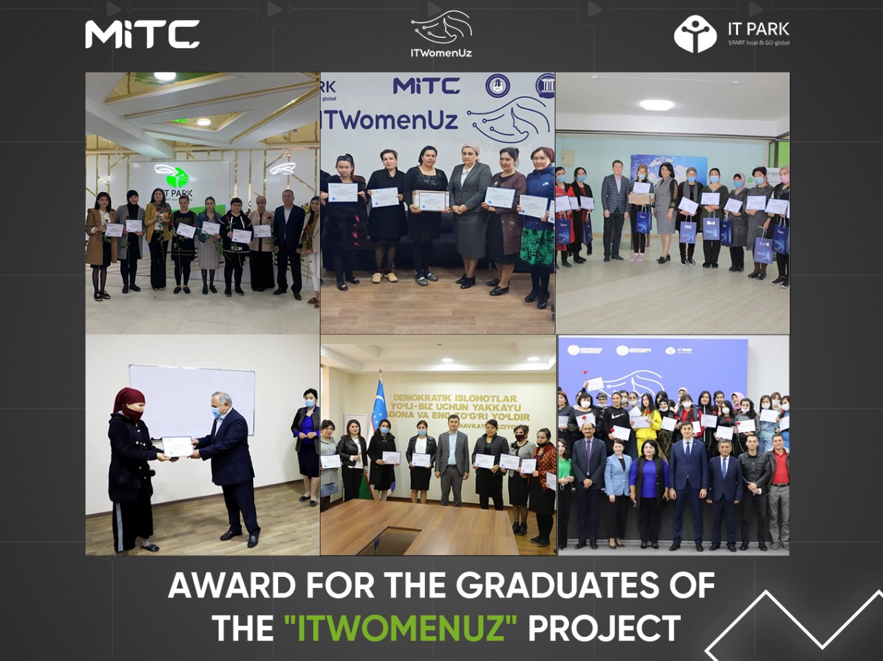 По всей стране проходят награждения выпускниц проекта «ITWomenUz», организованного Министерством по развитию информационных технологий и коммуникаций Республики Узбекистан, IT Park, а также Министерством по поддержке махалли и семьи, при поддержке UzCard, университета Amity в Ташкенте, Ташкентского университета информационных технологий имени Мухаммада аль-Хорезми и университета Inha в Ташкенте.
