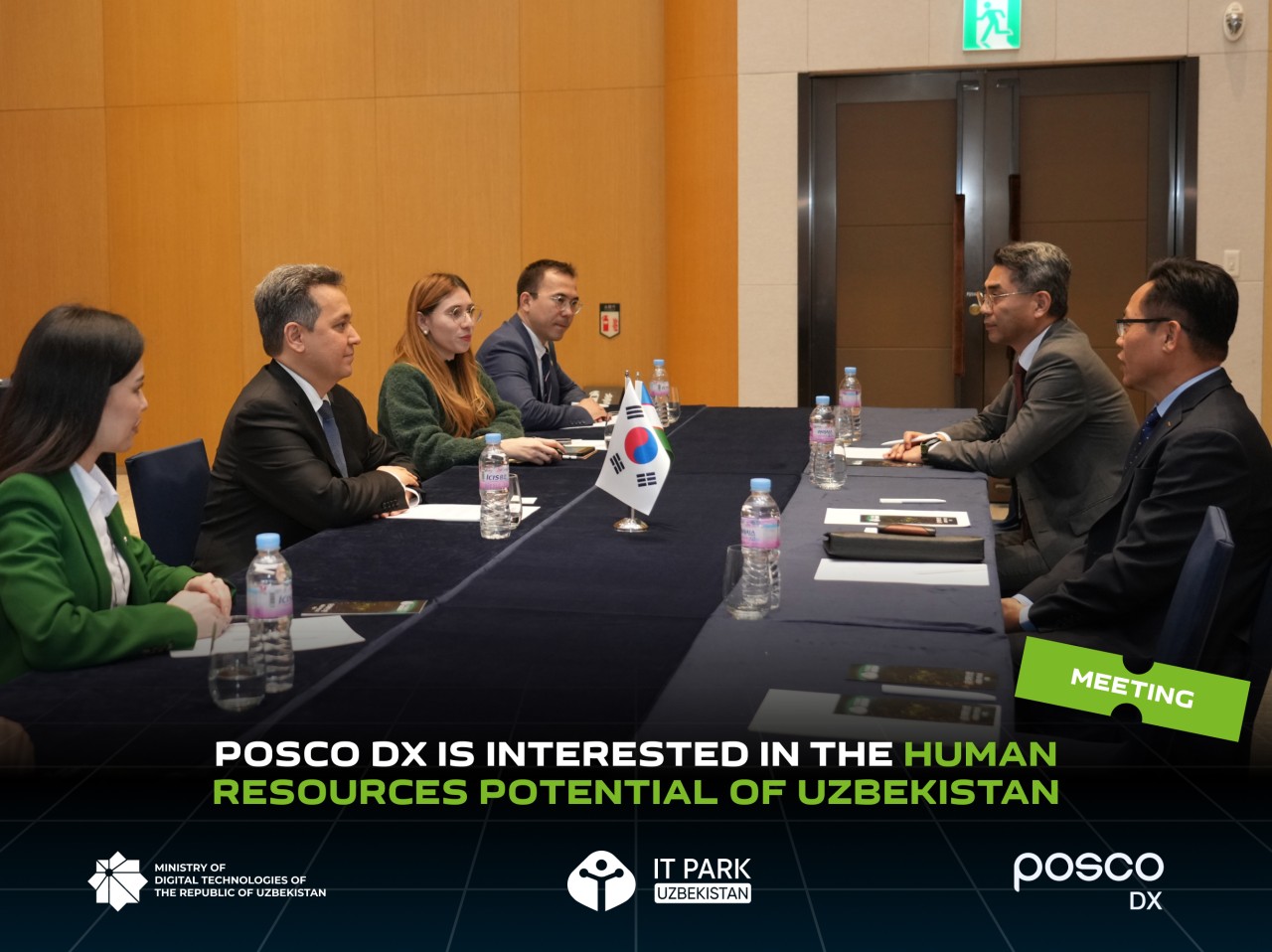 A delegation from Uzbekistan, led by Minister of Digital Technologies Sherzod Shermatov, convened a meeting with Woo-Sik Jung, Head of the IT Business Department at Posco DX in South Korea.