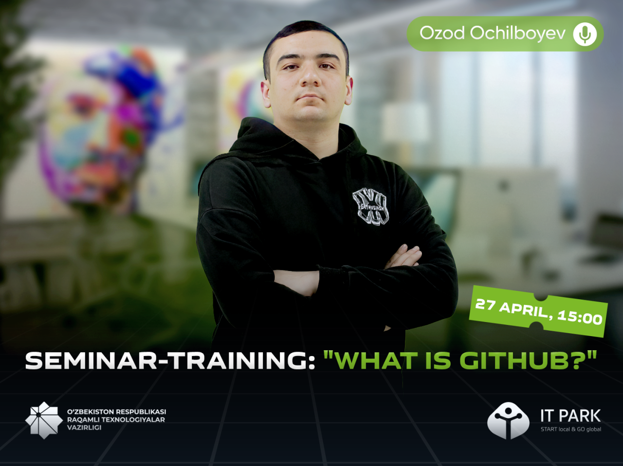 On April 27, at 15:00, a training seminar on "What is GitHub?" will be held in the Tashkent branch of IT Park.