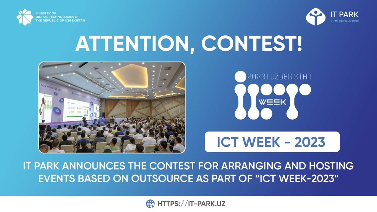 IT Park Uzbekistan announces an open competition to obtain the outsourcing rights for organizing and conducting Uzbekistan's Information and Communication Technology Week — ICTWEEK UZBEKISTAN.
