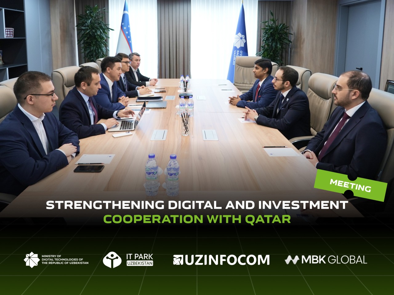 The Ministry of Digital Technologies hosted a meeting with representatives of the Qatari company MBK Holding. The delegation included Mr. Avinash Deshpande, Executive Director; Yazen Kush, Director of Strategic Development; and Jasim Al Ejji, Department Director.