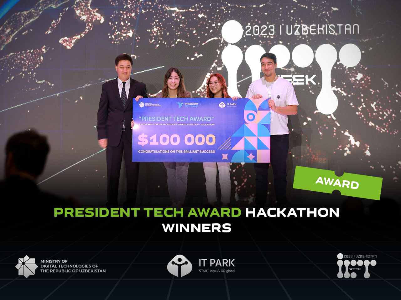 On October 25 of the current year, at the opening ceremony of the ICT Week 2023 forum, the award ceremony was held to honor the winners of the hackathon —main category of “President Tech Award” with a prize of $100,000.