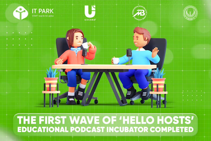 Podcast incubator ‘Hello Hosts’ is a program aimed at supporting and developing the educational podcasting industry in Uzbekistan where residents receive mentoring and services from the UZCARD corporate podcast studio, as well as assistance in launching their own podcast channel on social platforms for free.