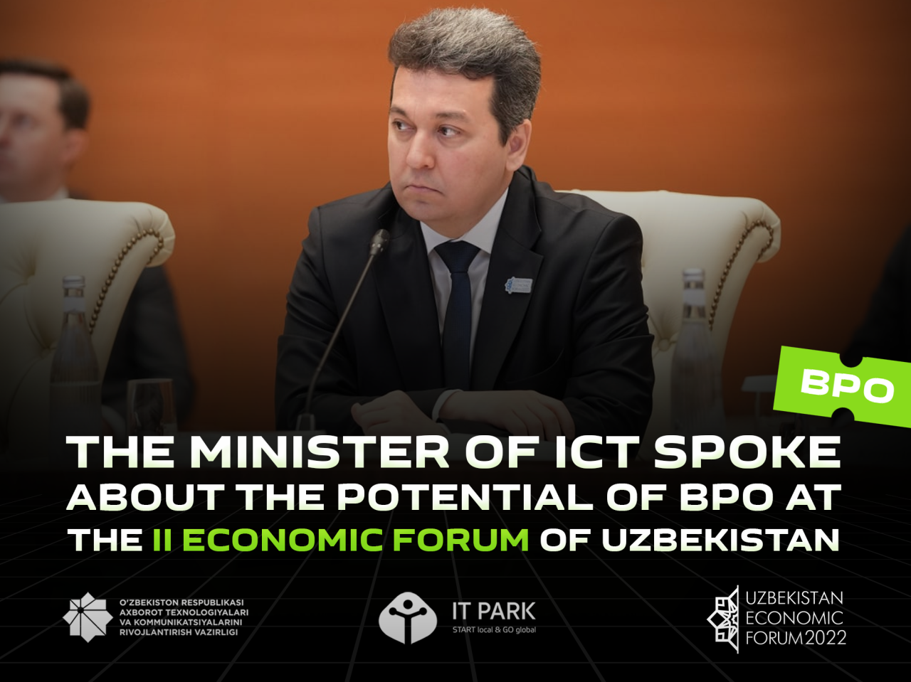 On November 4, 2022, the Minister for the Development of Information Technologies and Communications of Uzbekistan Sherzod Shermatov delivered a speech the topic “Uzbekistan as a new IT hub for IT and BPO” in a panel session at the II Economic Forum of Uzbekistan, which takes place in Samarkand.