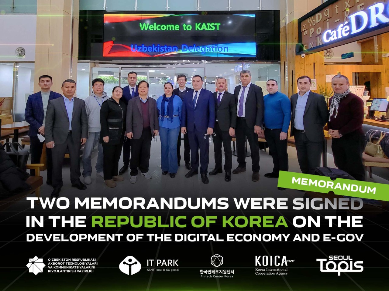 On December 12–16, 2022, a delegation of Uzbekistan headed by the Deputy Minister for Development of Information Technologies and Communications Jamshid Egamberdiev paid a business trip to the Republic of Korea. The delegation also included Deputy Director for Regional Development of IT Park Uzbekistan Fayzulla Aripzhanov and specialists from the Ministry of ICT.