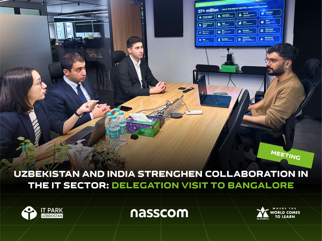 During the visit of the Ministry of Digital Technologies and IT Park to Bangalore, India, a series of meetings were held with prominent players in the IT sector, including the NASSCOM association, game development studios, and Acharya University. The primary objective of the visit was to enhance collaboration between Uzbekistan and India in the field of information technology and game development, as well as to attract international companies to Uzbekistan.