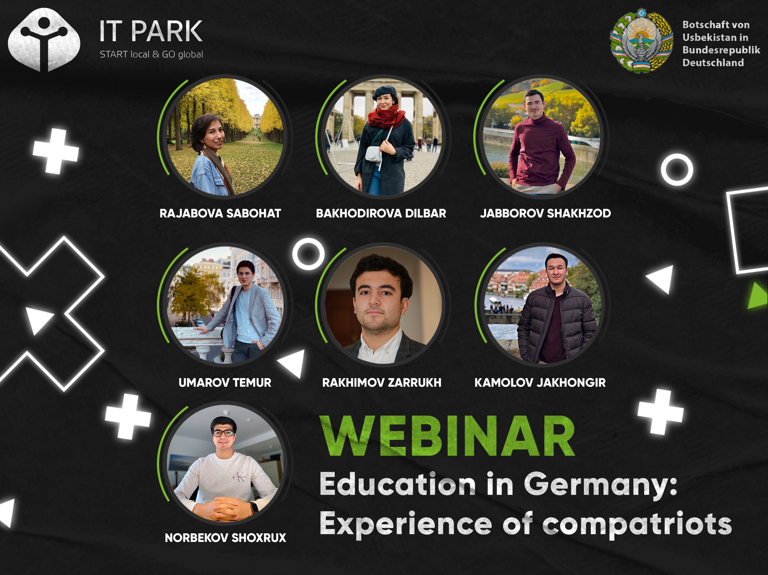 On February 2, 2021, there will be conducted a webinar, organized by IT Park in collaboration with the Embassy of Uzbekistan in Germany, where the Uzbeks living in Germany will talk on the topic: “New horizons of knowledge for the youth of Uzbekistan: The experience of compatriots in Germany.”
