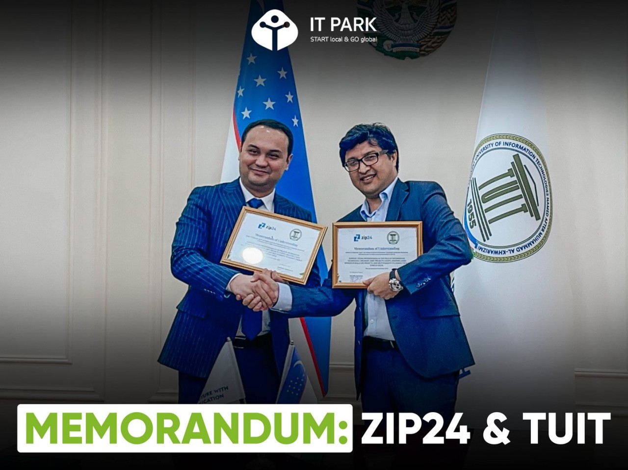 On November 16, 2021, a memorandum of cooperation was signed between the resident of IT Park «ZIP24» and the Tashkent University of Information Technologies Muhammad al-Khwarizmi.