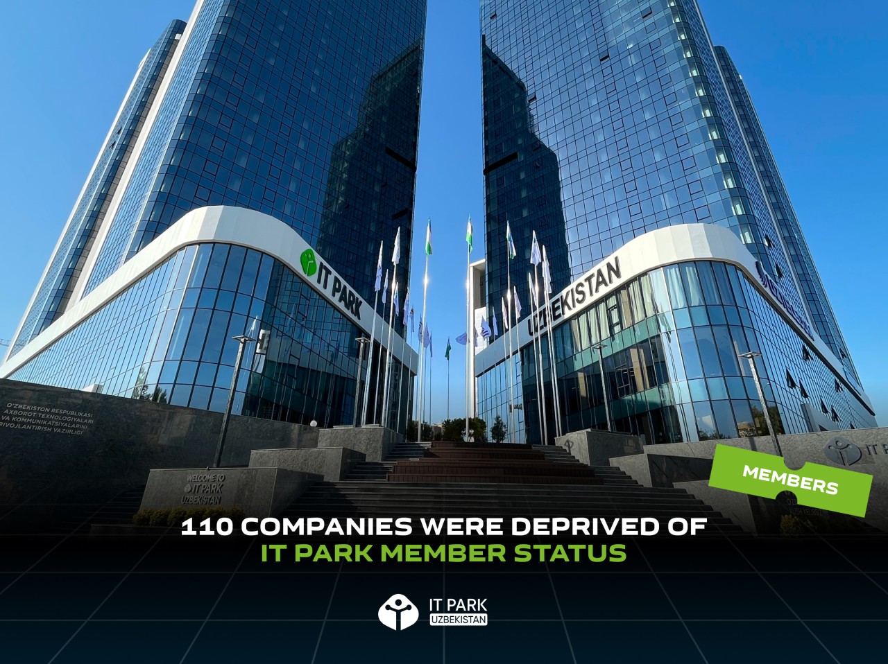 По итогам проведенного мониторинга по исполнению обязательств и требований, установленных Постановлением Кабинета министров №589 от 15 июля 2019 года, было выявлено 110 резидентов, которые не сдали аудиторское заключение по итогам 2023 года. Данные компании не выполнили свои обязательства перед IT Park, в связи с чем были лишены статуса резидента с дальнейшей отменой всех налоговых льгот и преференций.