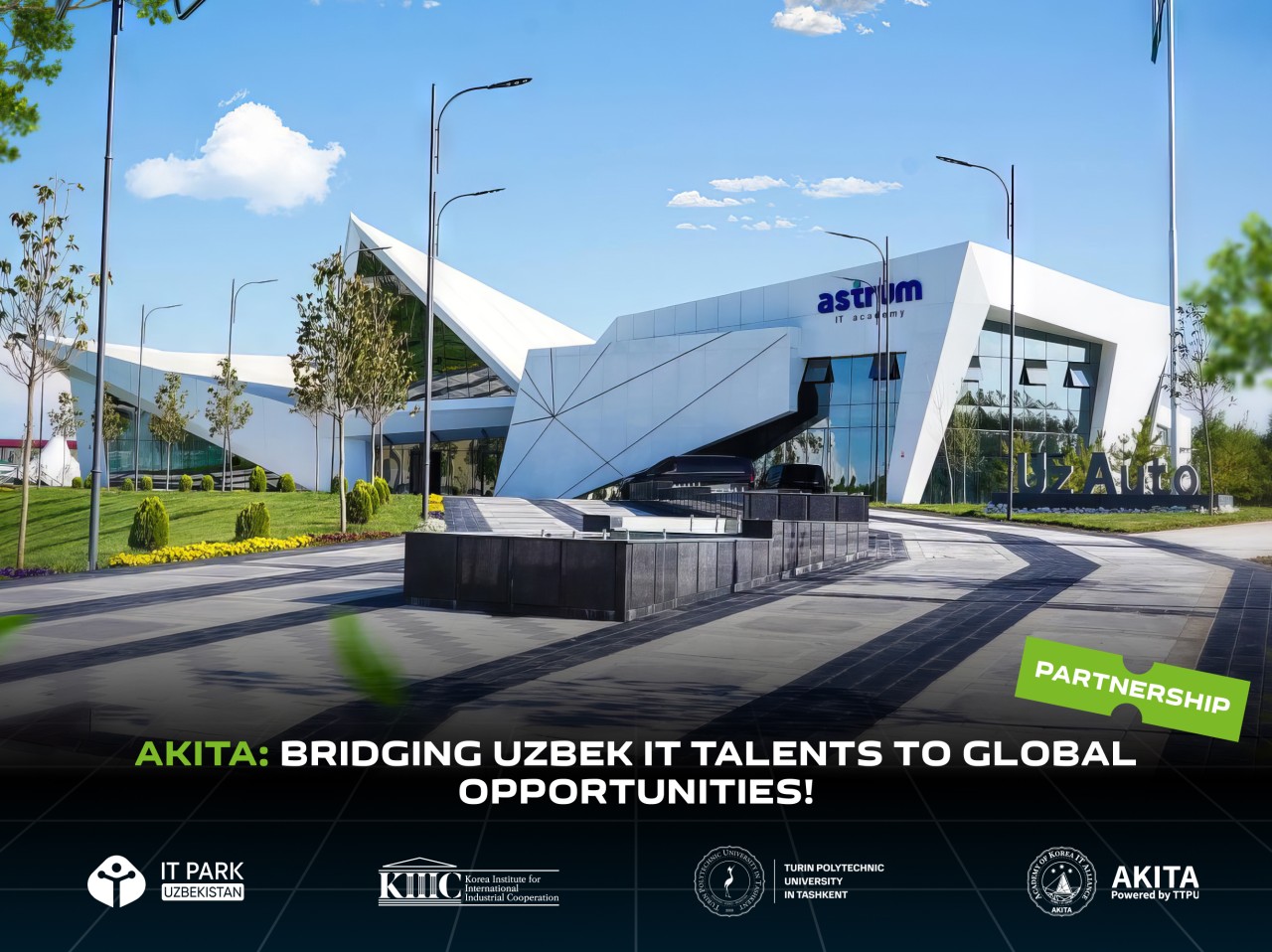 Для удовлетворения этого спроса Корейский институт международного промышленного сотрудничества (KIIIC) в сотрудничестве с Политехническим университетом Турина в Ташкенте запускает AKITA — Academy of Korea IT Alliance (AKITA). AKITA нацелена на стимулирование образовательных инноваций в Узбекистане путем подготовки IT-специалистов мирового уровня на основе модели корейского промышленного университета и в соответствии с международными стандартами.
