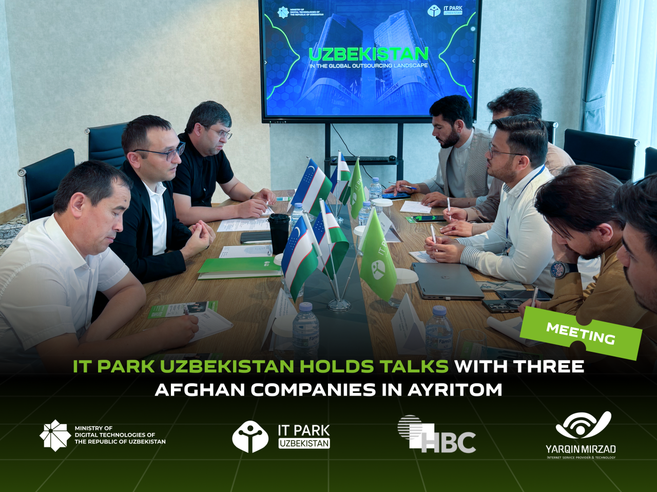 Генеральный директор IT Park Uzbekistan Абдулахад Кучкаров провел встречу с представителями трёх афганских компаний: Yarqin Mirzad, Horizon Bridge Consulting и Yanqi Yul в свободной экономической зоне “Айритом” в Термезе. В мероприятии также приняли участие руководители региональных структур Министерства цифровых технологий и представители местных властей.