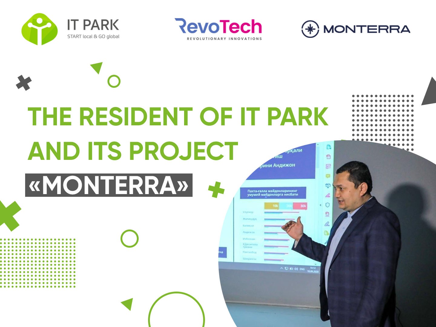 18 сентября 2020 года в Digital City Андижанской области прошли презентации крупных проектов, реализуемых в соответствии с постановлением Президента Республики Узбекистан от 28 апреля 2020 года «О мерах по широкому внедрению цифровой экономики и электронного правительства», в рамках которых резидент IT Park «Revotech» презентовал свой проект «Monterra».