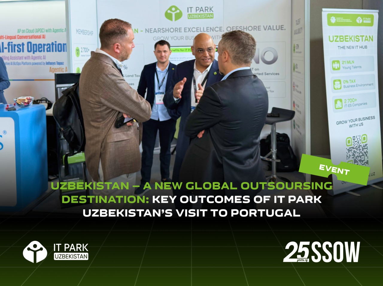 В рамках визита в Португалию и участия в крупнейшем международном форуме SSOW 2025 Europe, делегация IT Park Uzbekistan во главе с советником генерального директора Ахмедом Абулезом провела более 20 деловых встреч с представителями глобальных компаний. В центре внимания — развитие аутсорсинга, открытие региональных офисов, экспорт IT-услуг и привлечение инвестиций в Узбекистан.