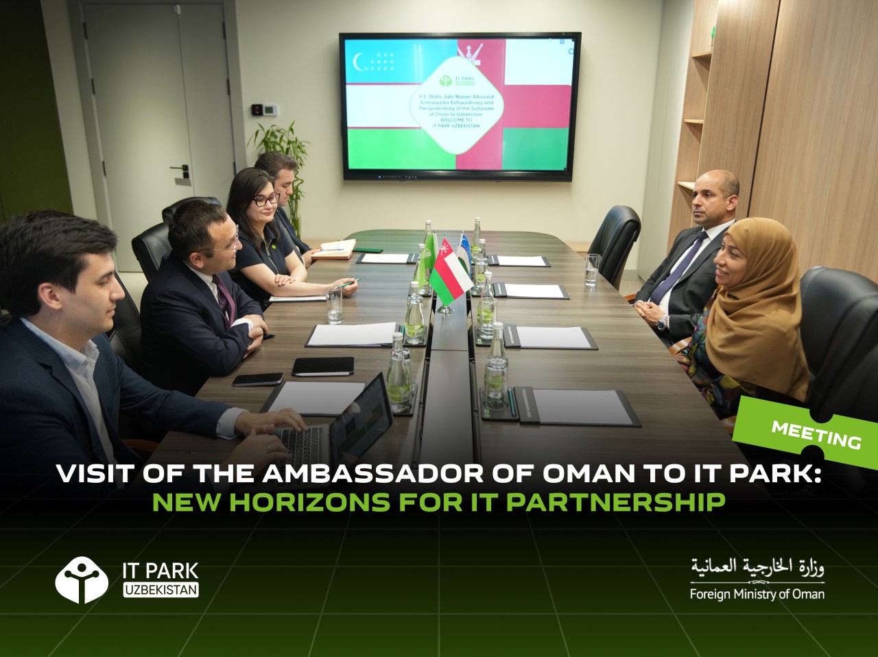Генеральный директор IT Park Uzbekistan Абдулахад Кучкаров провел встречу с Чрезвычайным и Полномочным Послом Султаната Оман в Республике Узбекистан — Вафо Джабр Насир аль-Бусаиди. Целью визита стало ознакомление с реформами в ИТ-секторе и обсуждение перспектив сотрудничества в области информационных технологий между Узбекистаном и Оманом.