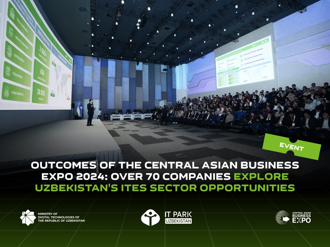 26-27-dekabr kunlari IT Park Uzbekistanda Raqamli texnologiyalar vazirligi, IT Park Uzbekistan va “CabExpo” hamkorligida “Central Asian Business Expo 2024” tashkil etildi. Tadbirda 70 dan ortiq kompaniya vakillari qatnashdi. Forum ishtirokchilari turli sohalarda, xususan logistika sohasida xorijiy kompaniyalarga xizmat ko‘rsatuvchi yetakchi tadbirkorlar, asosiy ishtirokchilar va mutaxassislar bilan tanishish imkoniyatiga ega bo‘ldilar.